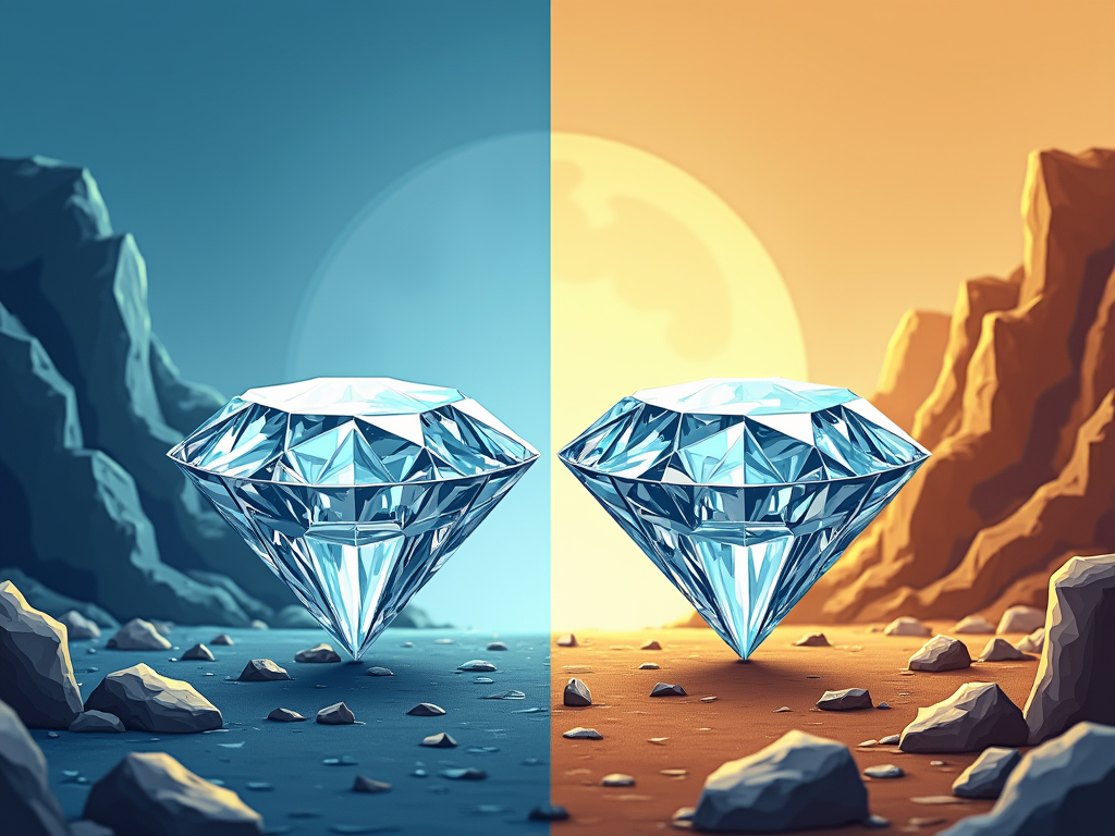 • 경도: 모스 경도계에서 둘 다 10을 기록, 가장 단단한 물질입니다.