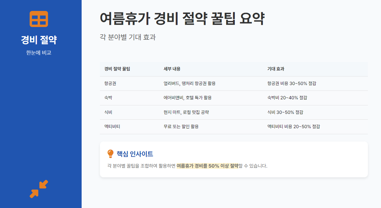 자, 그럼 이제 여러분의 여름휴가 경비를 50% 이상 절약해 줄 4가지 놀라운 꿀팁을 공개합니다. 이 꿀팁들을 잘 활용하시면 여러분의 여름휴가가 훨씬 더 풍성해질 거예요.