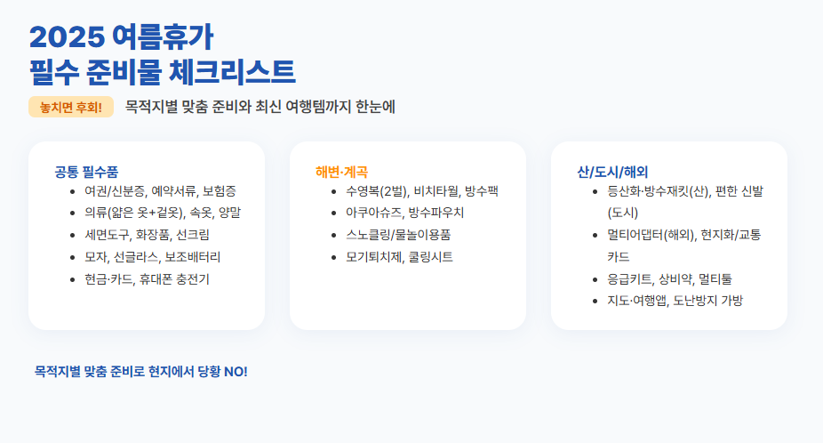 • 목적지별 맞춤형 여름휴가 준비물 체크리스트와 필수품 정리
