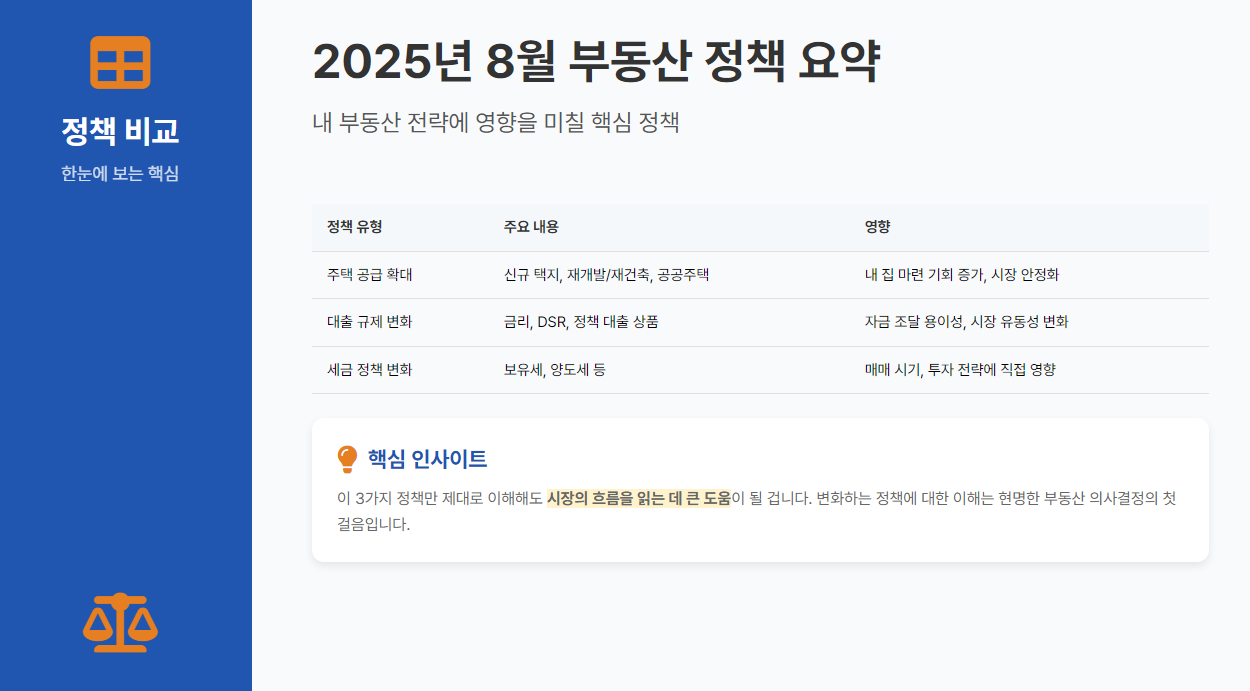 - 2025년 8월 부동산 정책의 핵심 3가지를 명확히 이해할 수 있습니다.